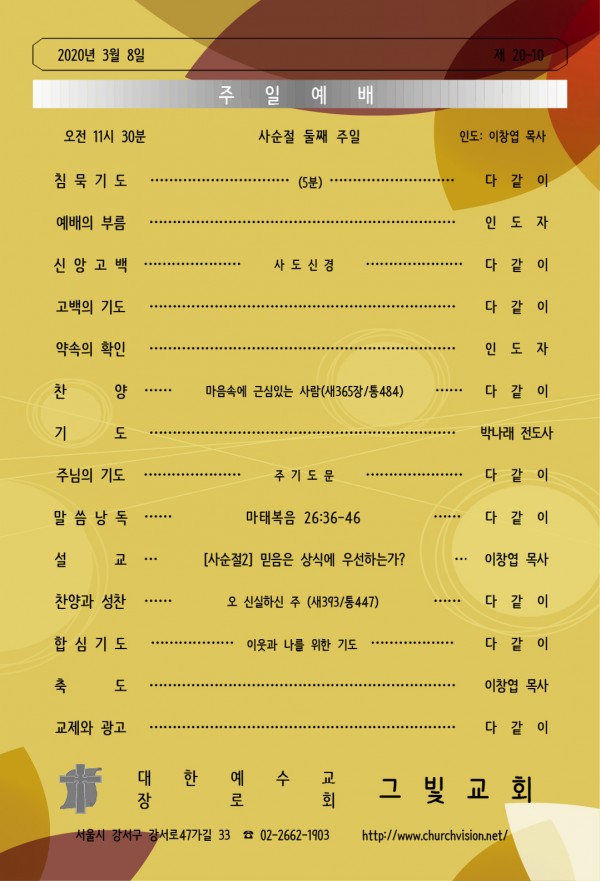 2020년 3월 8일 교회예배 알림