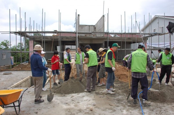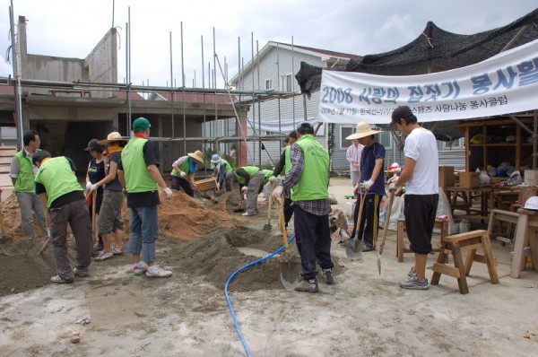 첫 작업은 시멘트와 모래 섞어 '공구리'치기..