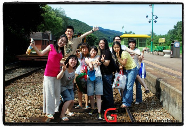 철길을 배경으로 찍자고..