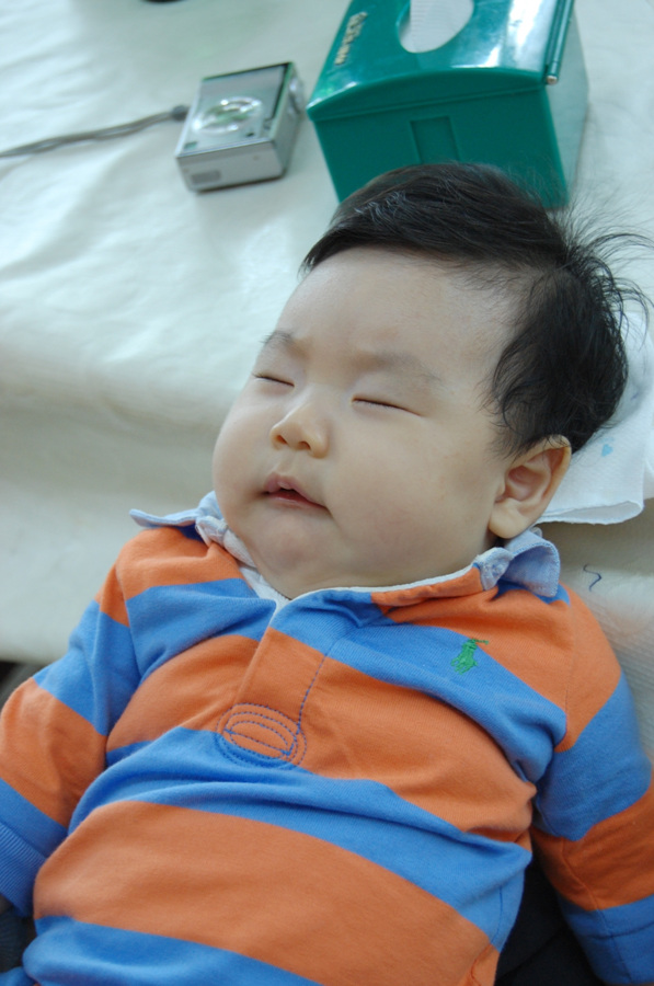 자고있을때 그리고 잠을 깨고 인상쓰는 리진이의 모습(리틀 진수)