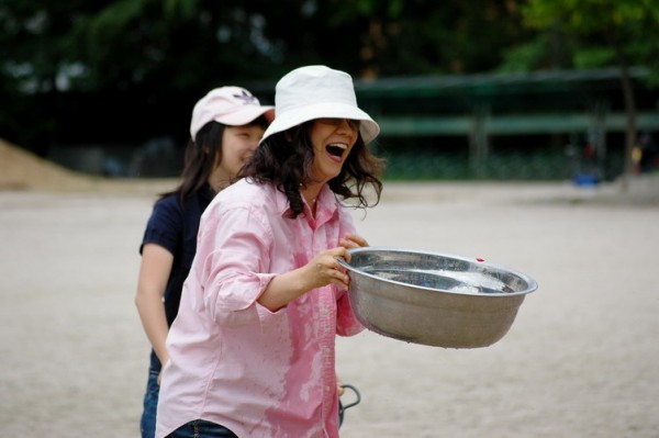 물에 맞아도..열심히...